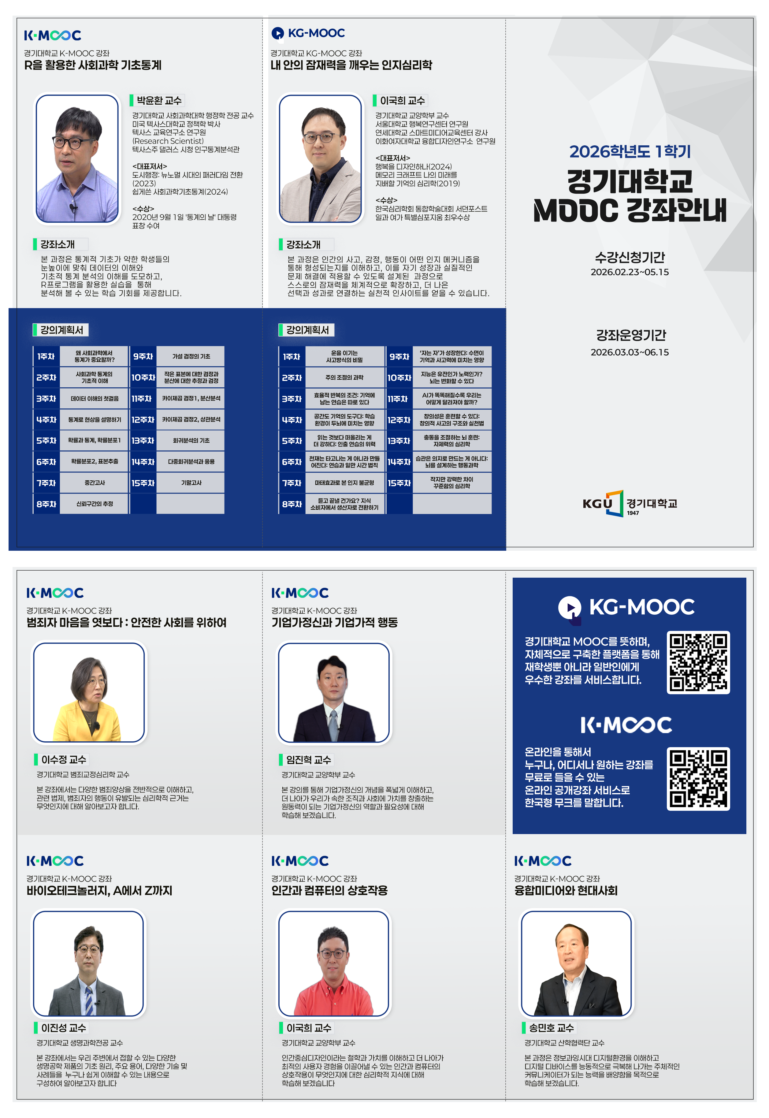 한국공학대학교에서는 2026학년도 온라인 공개강좌(K-MOOC)를 아래와 같이 운영합니다.
