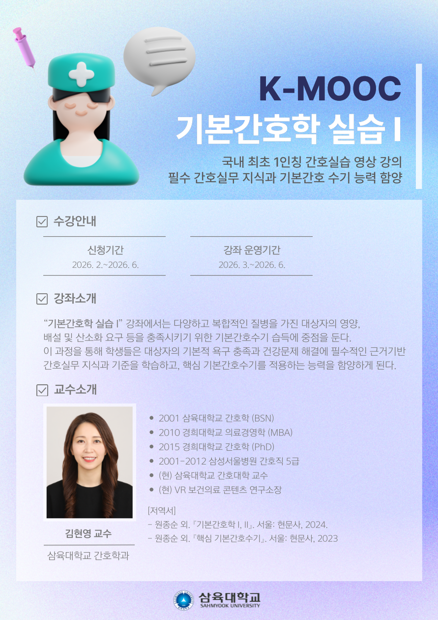 삼육대학교 K-MOOC 특강 안내(기본간호학실습 1)