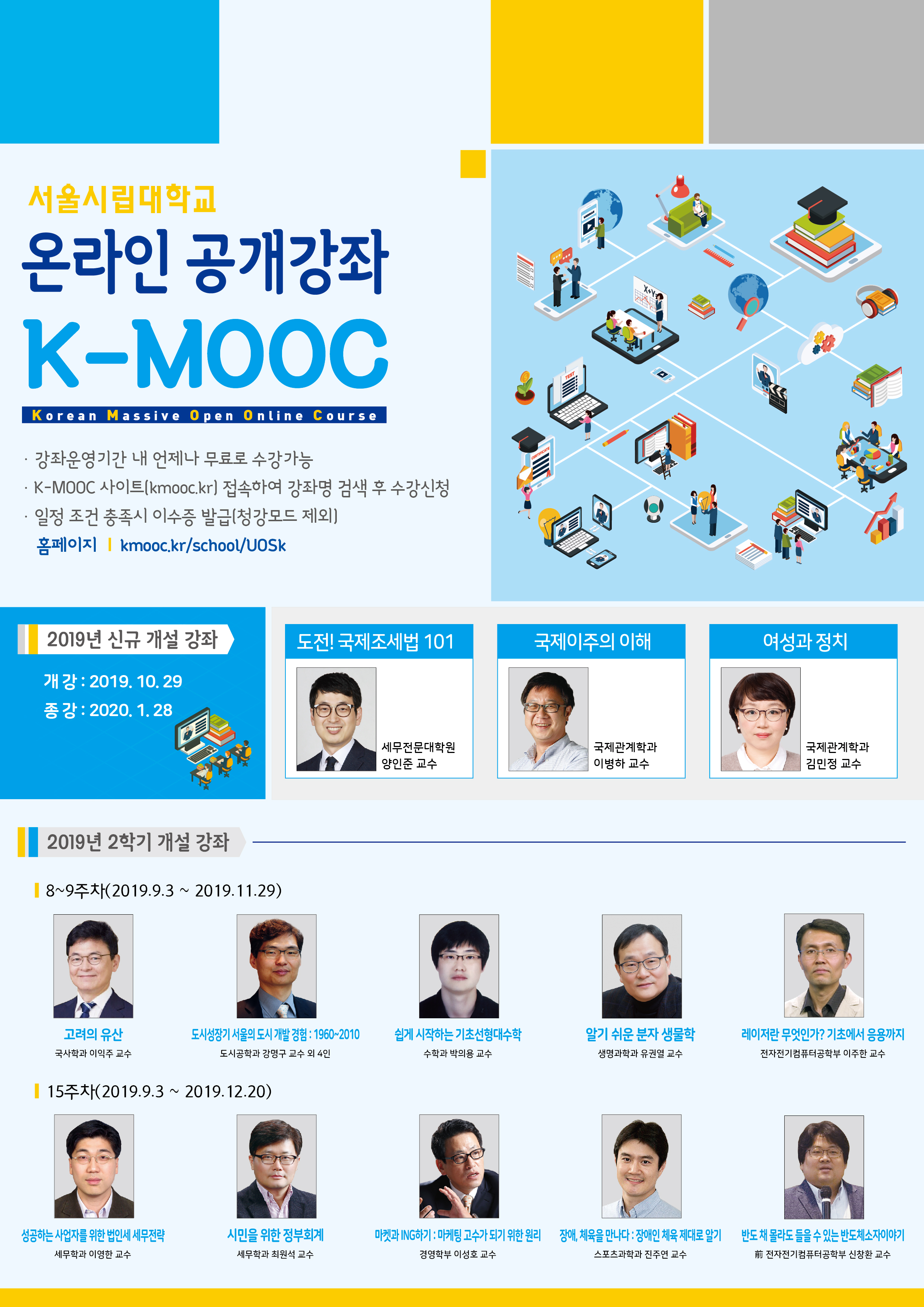서울시립대학교에서 한국형 온라인 공개강좌(K-MOOC)를 아래와 같이 운영합니다.