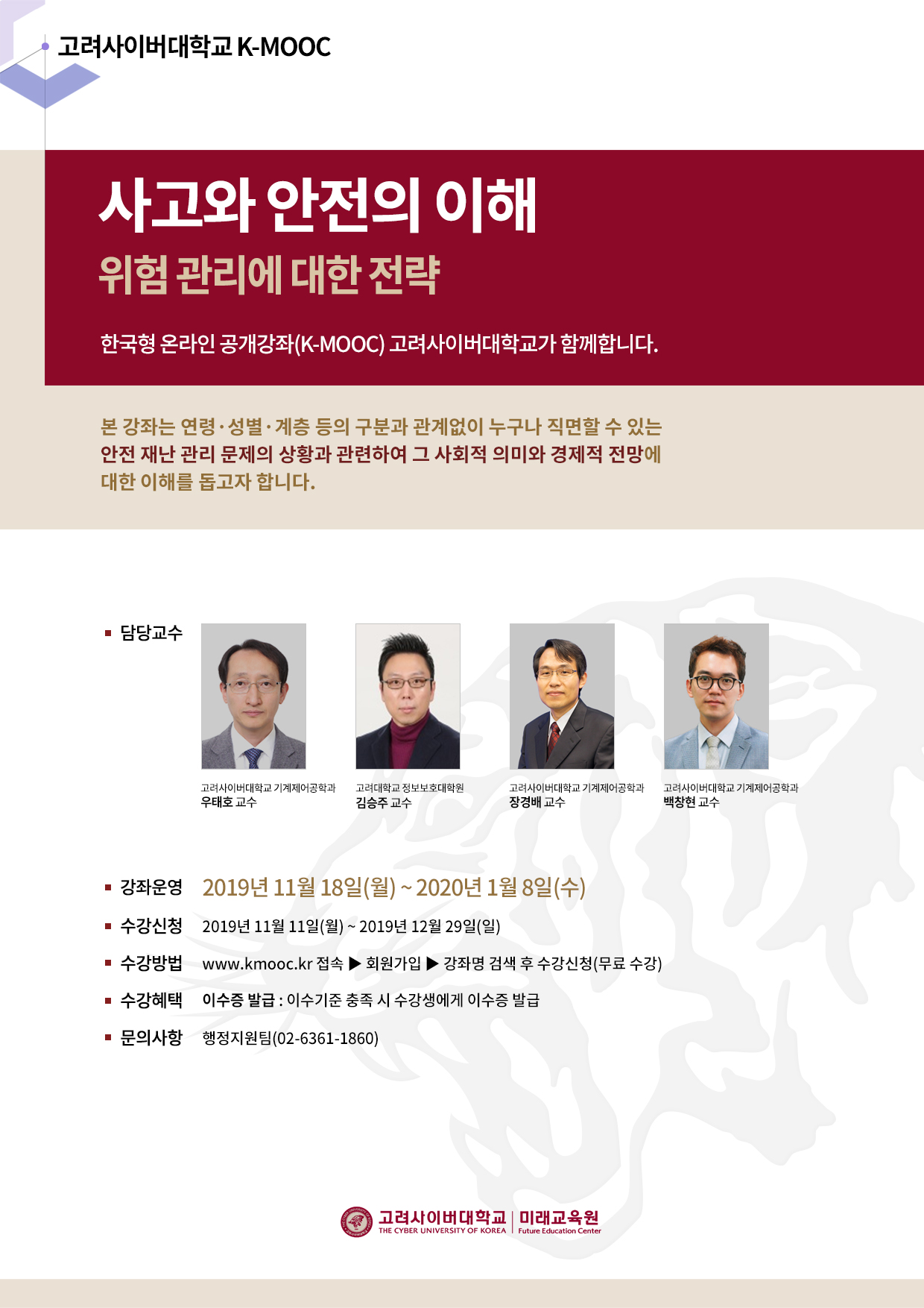고려사이버대학교 K-MOOC 수강안내(사고와 안전의 이해 : 위험관리에 대한 전략)