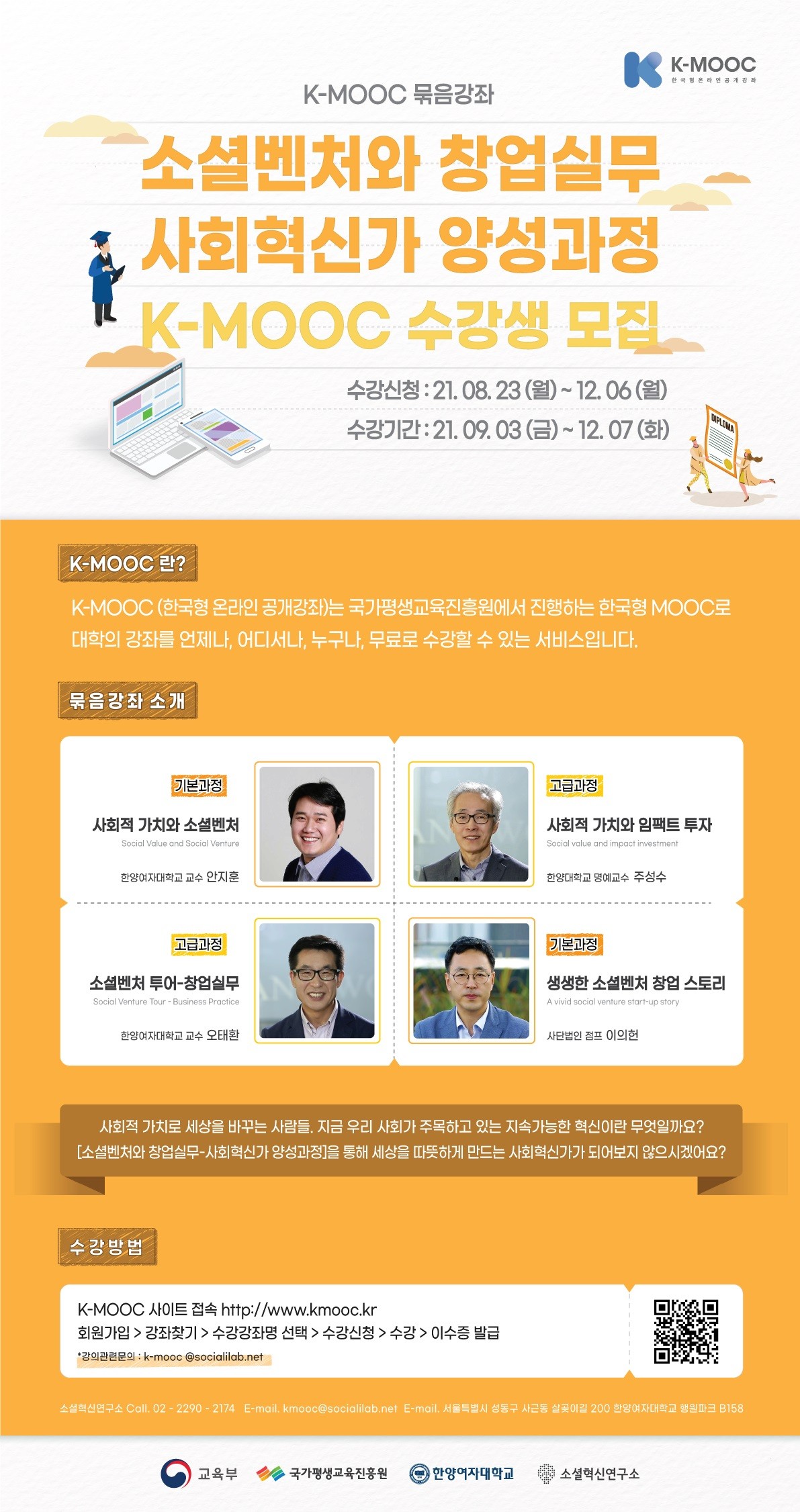 한양여자대학교 K-MOOC 강좌 수강안내(사회적 가치와 소셜벤처 외 3과목)