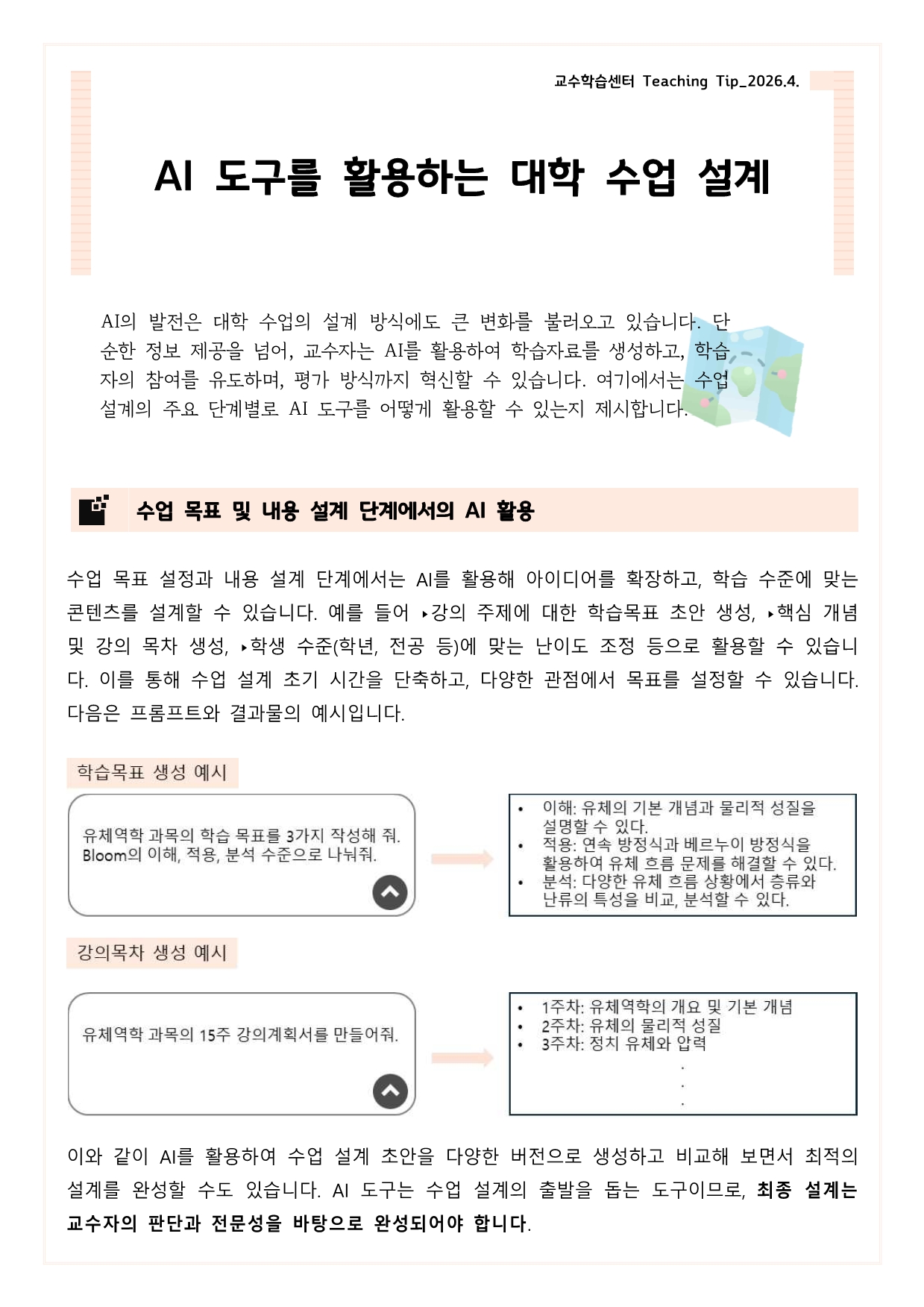 [2026학년도 4월 Teaching Tip] AI 도구를 활용하는 대학 수업 설계